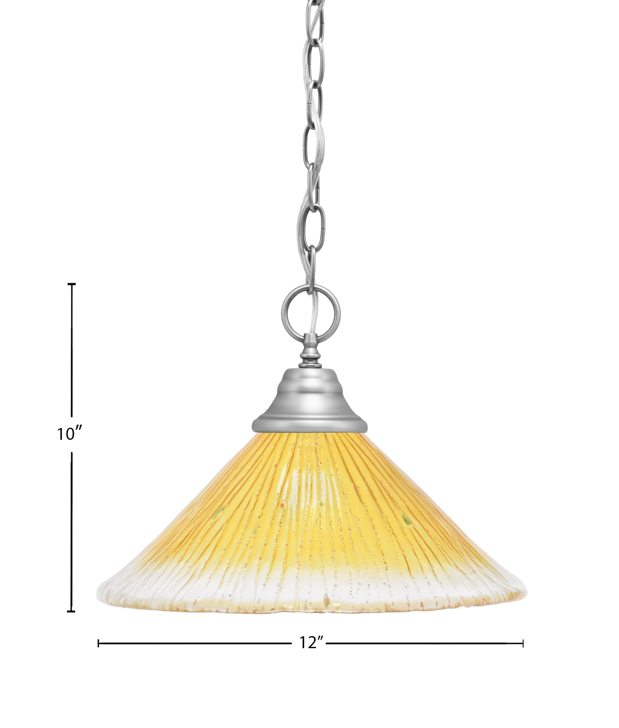 Enhance your space with a touch of refined elegance using this Chain Hung Pendant, featuring a sleek Brushed Nickel Finish paired with the stunning 12" Gold Champagne Crystal glass. This sophisticated Gold Champagne Crystal glass creates a warm, radiant glow, adding both opulence and charm to your room. This pendant light combines high-quality craftsmanship with a chic and decorative element.