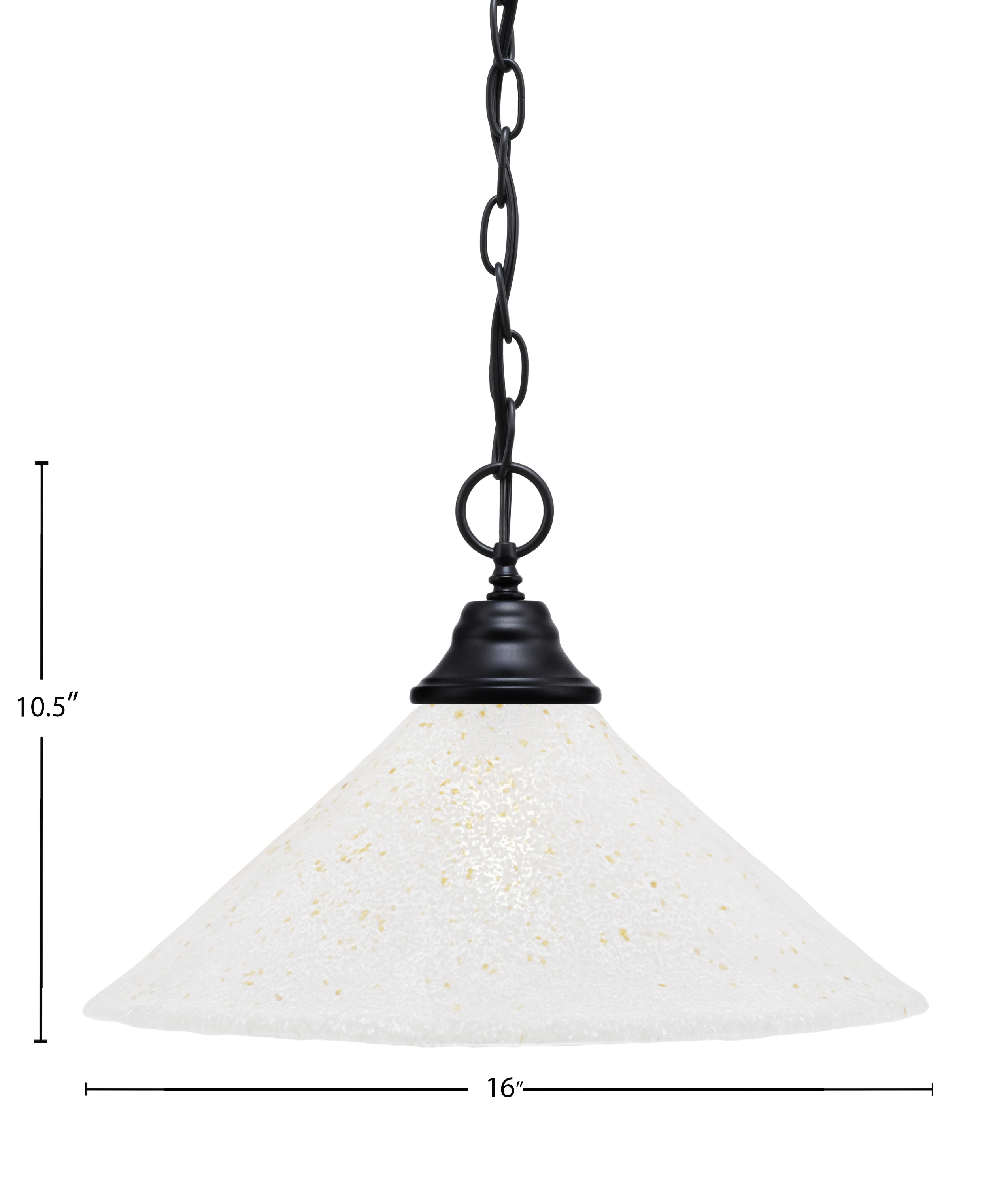 Introducing Our Elegant Chain Hung Pendant, Shown In A Striking Matte Black Finish. This Stunning Fixture Features A Unique 16" Gold Ice Glass Shade That Casts A Warm And Inviting Glow In Any Space. Perfect For Enhancing The Atmosphere In Your Living Room, Dining Area, Or Entryway, This Pendant Will Be A Gorgeous Addition To Your Home Décor.